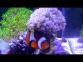 My clown-fish 'Darlene' hosting her hammer coral. She also likes to go into the green star polyps behind her to hide.watershed Clownfish hosting hammer | |